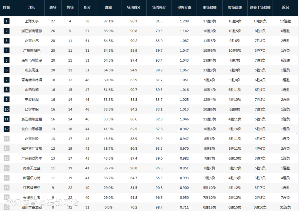 随着广州男篮不敌青岛男篮,北控男篮爆冷不敌南京同曦,这让已经获得27胜的上海男篮提前11轮获得了季后赛名额,毫无疑问是现阶段综合实力最强的队伍。