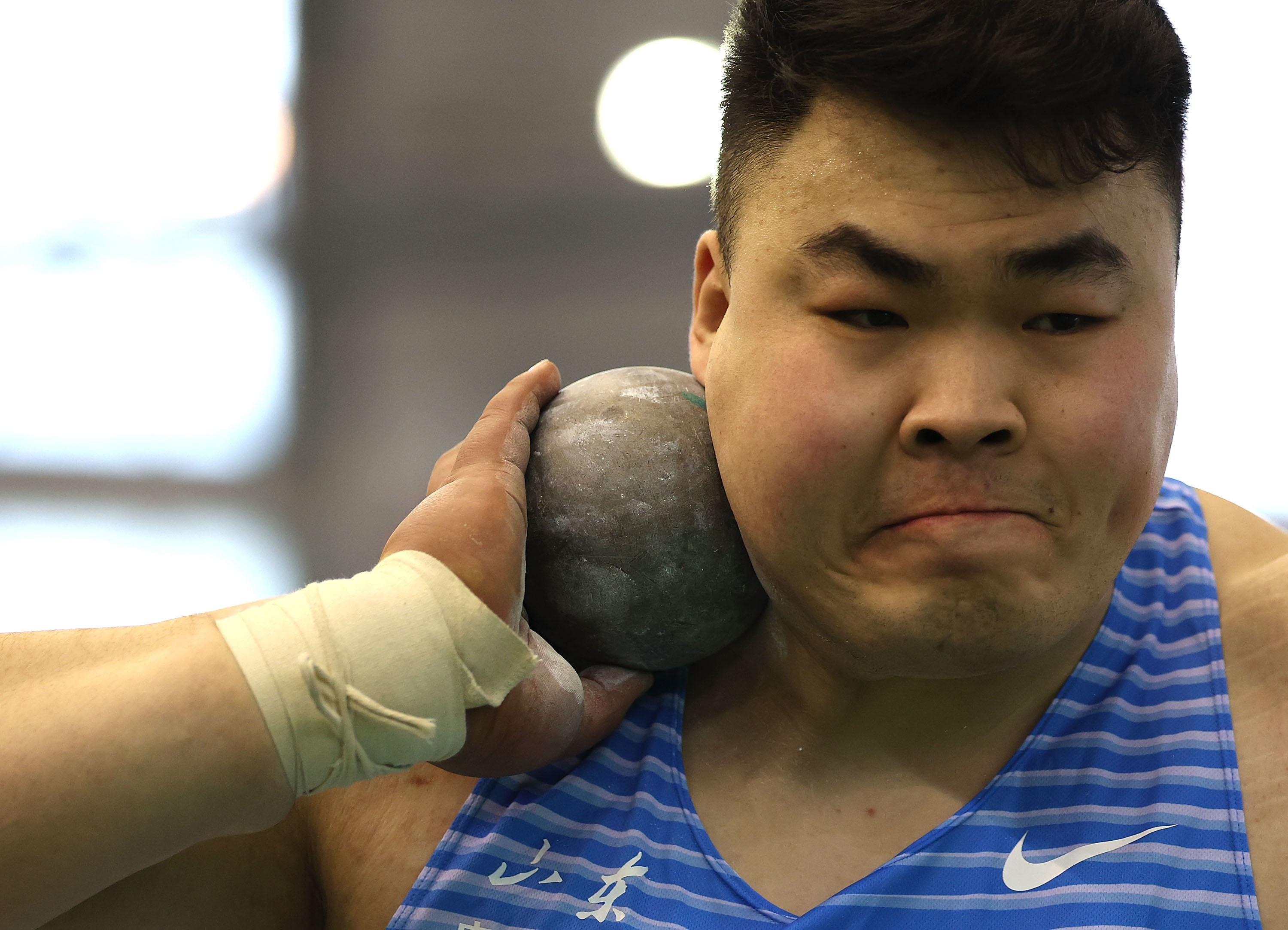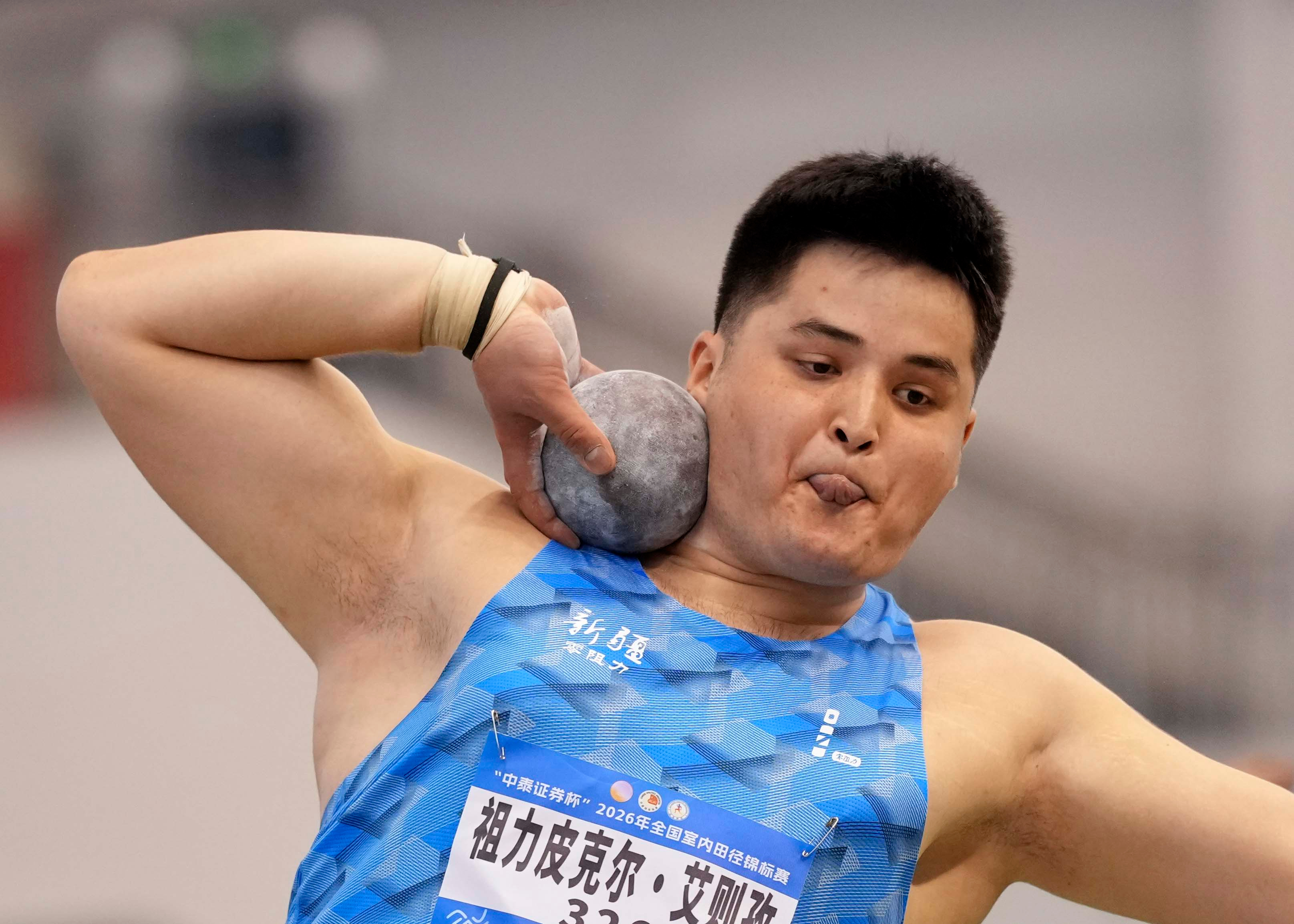 3月27日,新疆队选手祖力皮克尔·艾则孜在男子铅球决赛中。他获得第四名。 新华社记者 廖宇杰 摄
