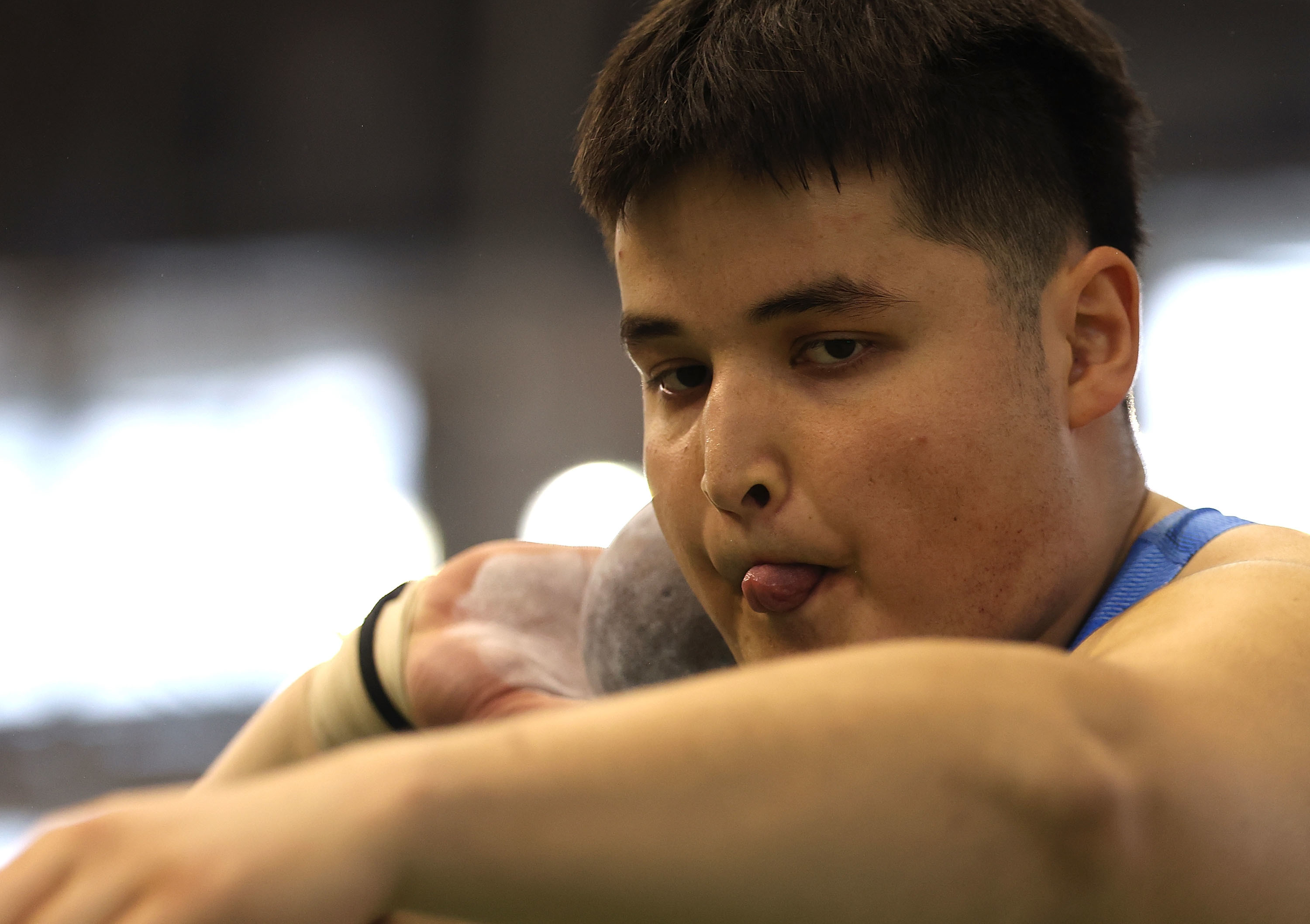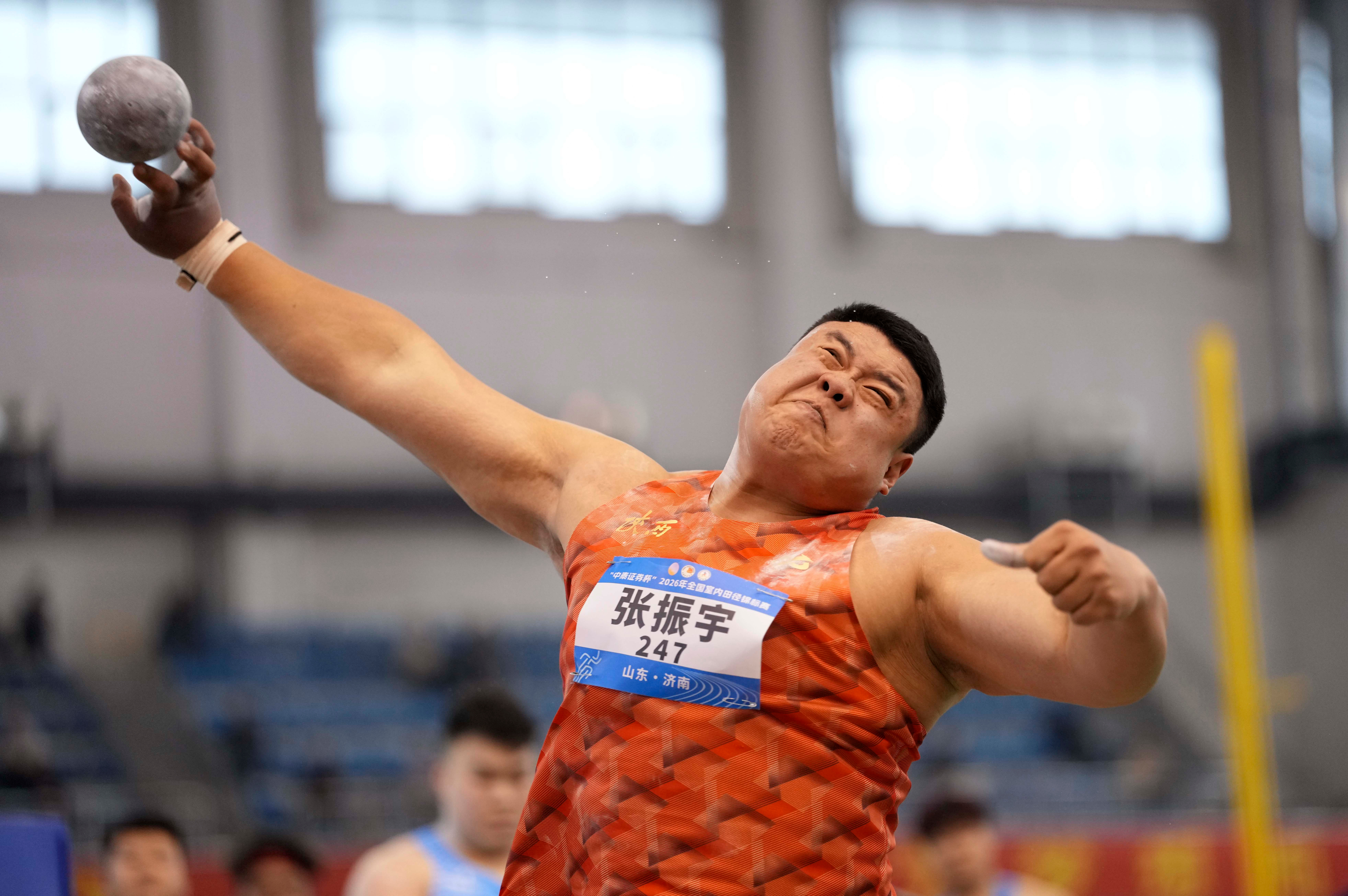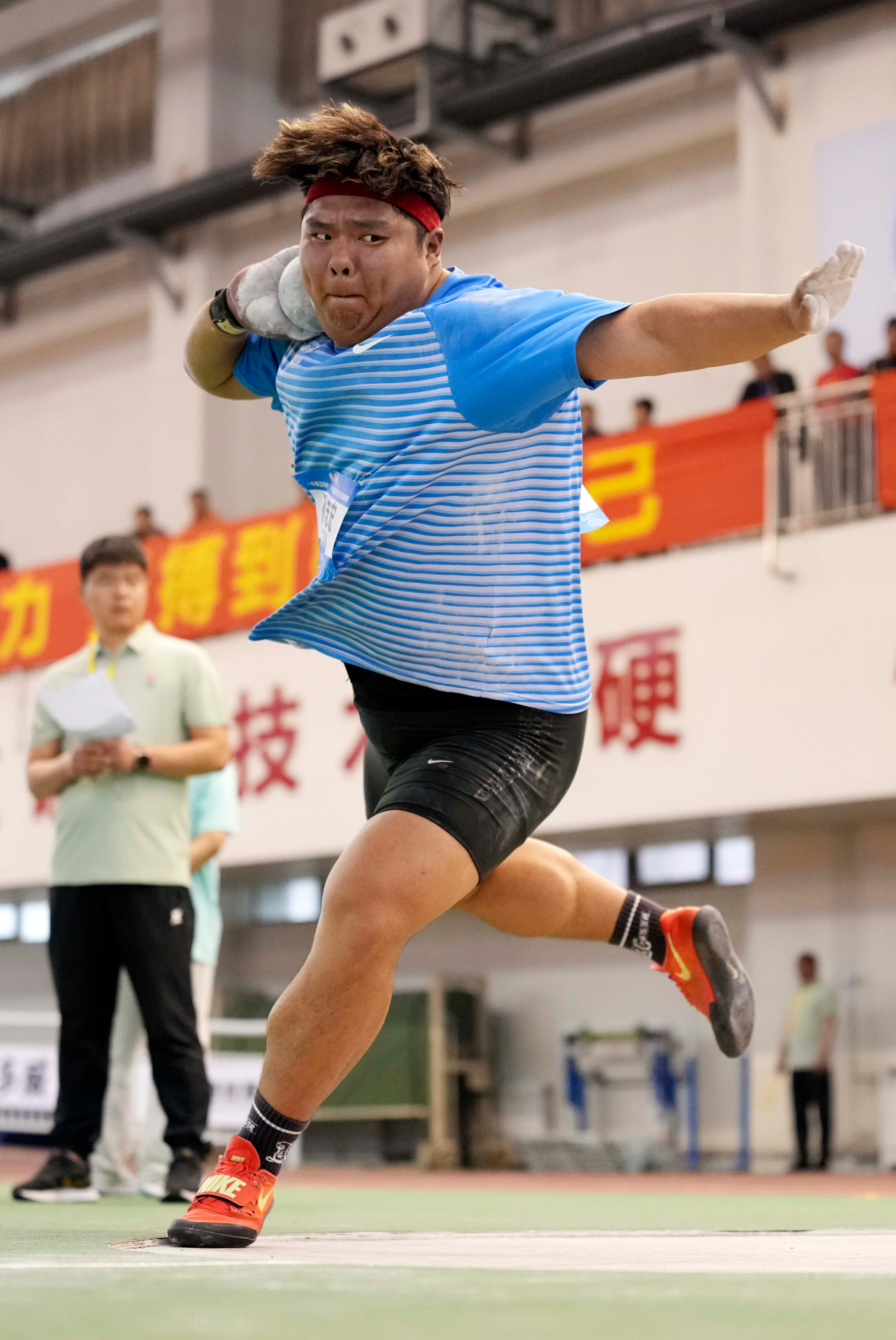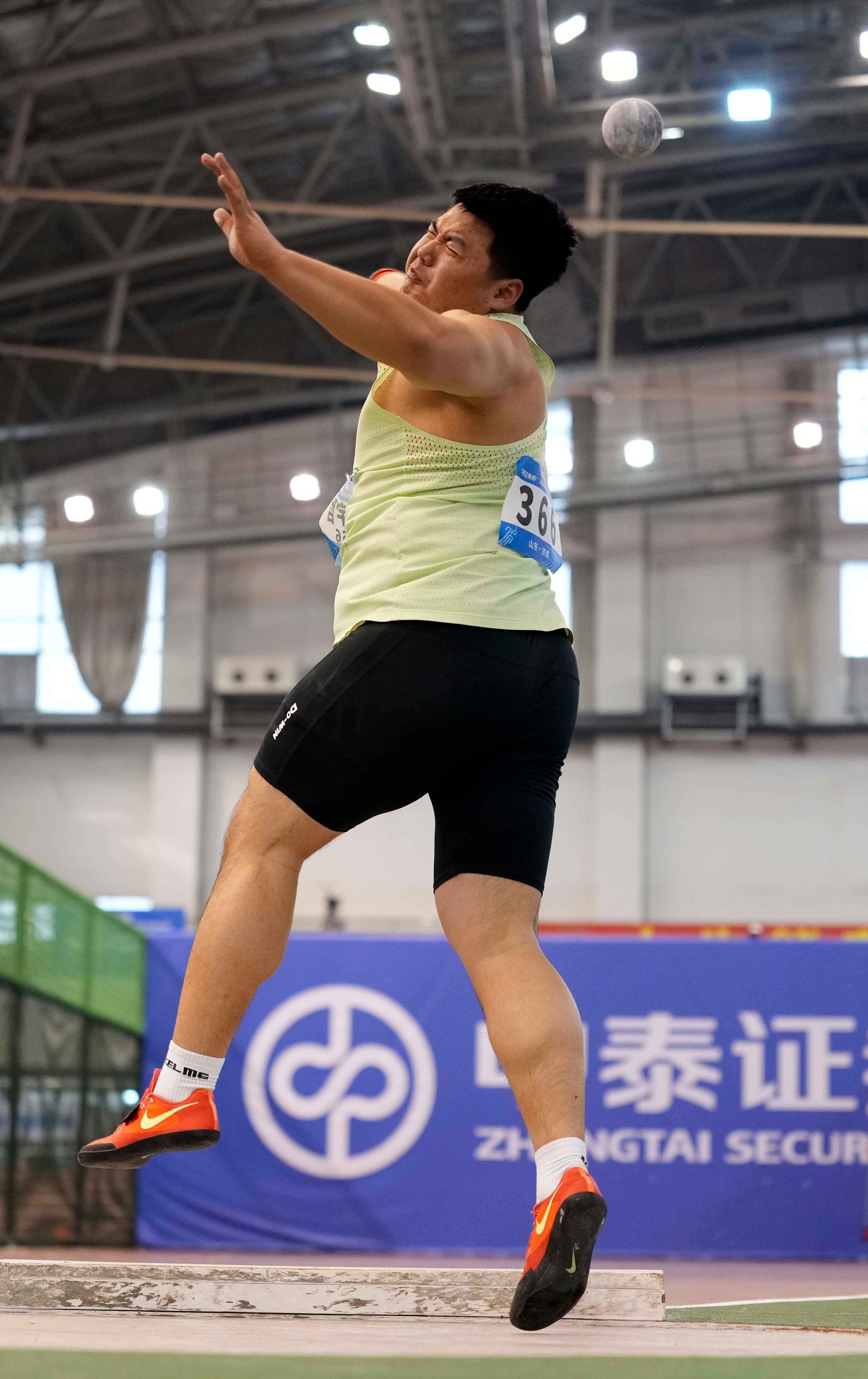 3月27日,个人选手张宇哲在男子铅球决赛中。他获得第六名。新华社记者 雒圆 摄